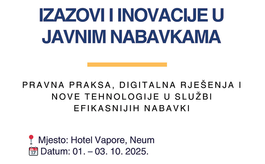 Seminar je namijenjen svima koji žele razumjeti, provoditi i nadzirati javne nabavke na zakonit, efikasan i transparentan način – u skladu s aktuelnom pravnom praksom i novim tehnološkim rješenjima.